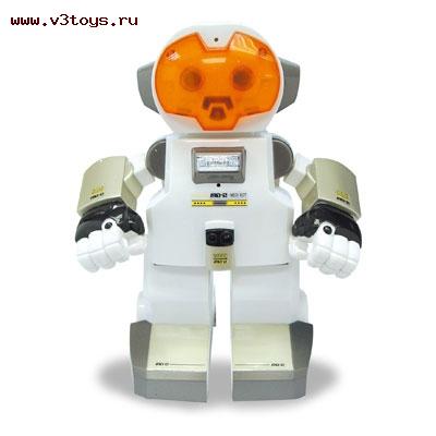 - при движении робот "размахивает" руками, издает забавные звуки и мигает глазами и ртом, может держать простые предметы в руках.