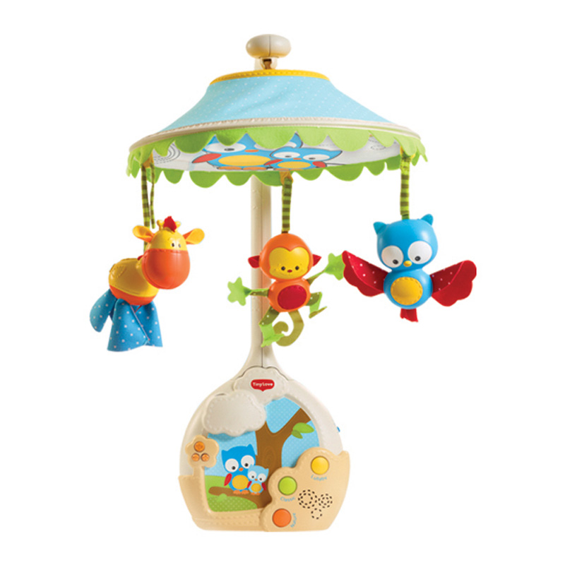 Впервые игрушки, закрепленные на плафоне мобиля можно использовать отдельно (игрушки крепятся на петли липучки и их можно прикрепить к коляске, баунсеру или дуге).