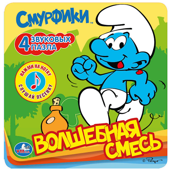 Увеличить"УМКА". СМУРФИКИ. ВОЛШЕБНАЯ СМЕСЬ. (ЗВУК. КНИЖКА С КНОПКОЙ НА ОБЛОЖКЕ И ЗВУКОВЫМИ ПАЗЛАМИ)в кор.12шт
