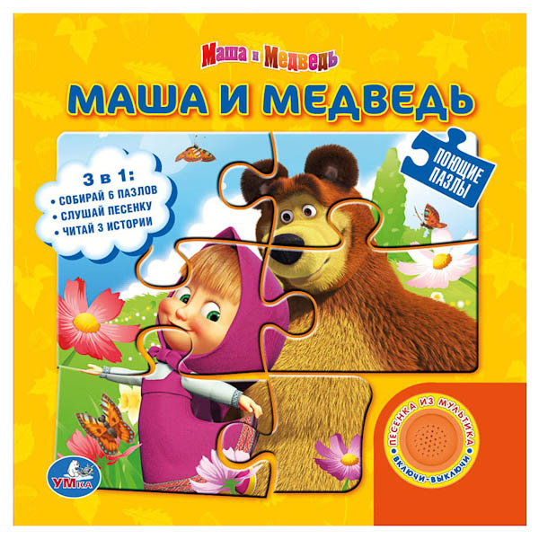 Увеличить"УМКА". МАША И МЕДВЕДЬ. МУЗЫКАЛЬНАЯ КНИЖКА (1 ПЕСЕНКА) С ПАЗЛАМИ (6 ПАЗЛОВ ПО 6 ДЕТ.) в кор.16шт
