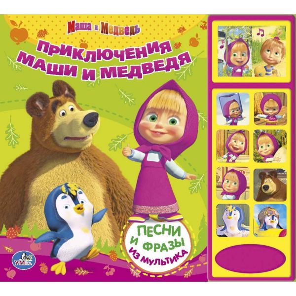 Увеличить"УМКА". МАША И МЕДВЕДЬ. ПРИКЛЮЧЕНИЯ МАШИ И МЕДВЕДЯ.(8 ЗВУК. КНОПОК И ЗВУК ЗАДВИЖКИ). в кор.24шт