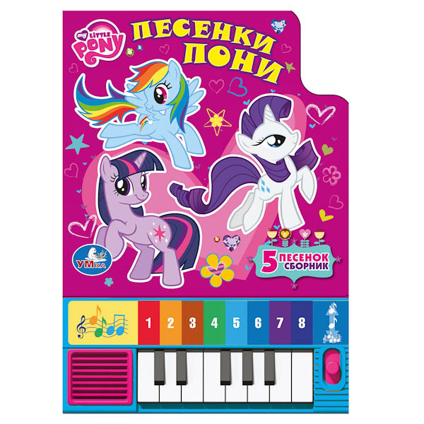 Увеличить"УМКА". MY LITTLE PONY. ПЕСЕНКИ ПОНИ. КНИГА-ПИАНИНО С 8 КЛАВИШАМИ И ПЕСЕНКАМИ. 143Х202ММ. в кор.40шт