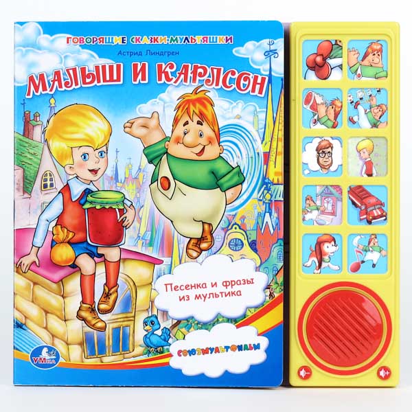 Увеличить"УМКА". МАЛЫШ И КАРЛСОН. (10 ЗВУКОВЫХ КНОПОК).ФОРМАТ: 242Х230ММ. ОБЪЕМ: 10 КАРТ. СТР. в кор.30шт