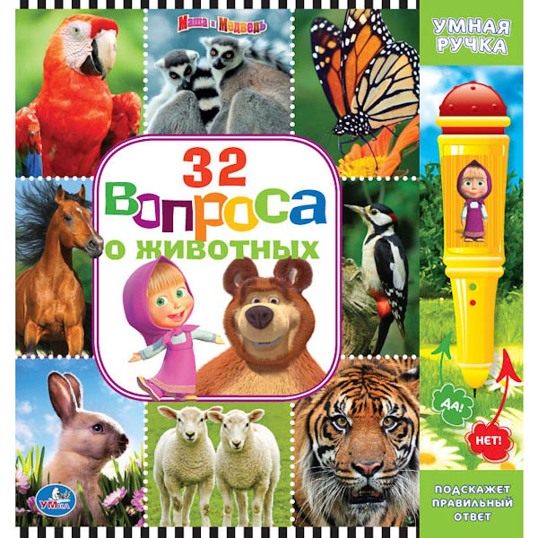 Увеличить"УМКА". МАША И МЕДВЕДЬ. 32 ВОПРОСА О ЖИВОТНЫХ (КНИГА-ВИКТОРИНА С РУЧКОЙ "ДА-НЕТ") в кор.24шт