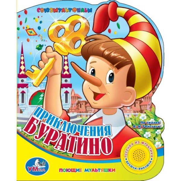 Увеличить"УМКА". ПРИКЛЮЧЕНИЯ БУРАТИНО (1 КНОПКА С ПЕСЕНКОЙ). ФОРМАТ: 150Х185ММ. ОБЪЕМ: 10 СТР. в кор.36шт