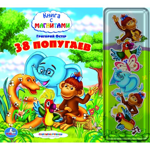 Увеличить"УМКА". СОЮЗМУЛЬТФИЛЬМ. 38 ПОПУГАЕВ.КНИГА С МАГНИТАМИ. ФОРМАТ: 230Х200ММ. ОБЪЕМ: 10 СТР. в кор.28шт
