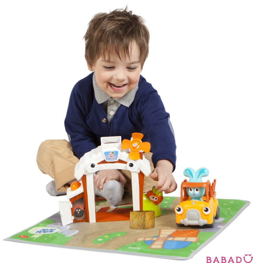 Ферма Бани Ouaps - прекрасный подарок для малыша старше 18 месяцев. Кроха с удовольствием будет катать машинку, грузить в нее сено, искать спрятавшуюся за дверцей курочку, а также придумывать различные ситуации с участием веселого зайчонка Бани.