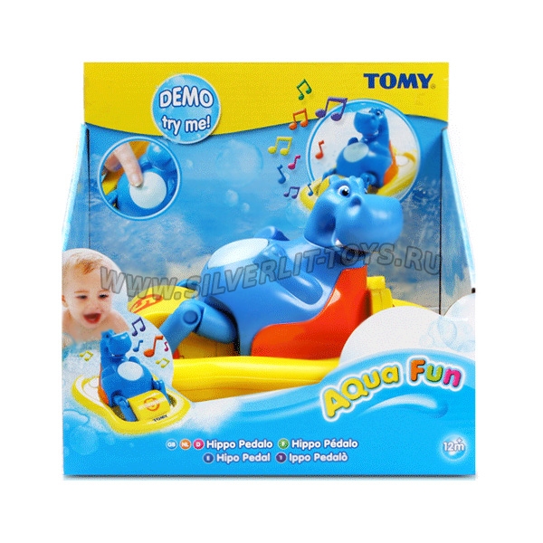 Эта замечательная игрушка обязательно развлечет Вашего малыша во время купания. Гиппопотам плавает на катамаране, крутит ножками педали и поет веселую песенку, если ему нажать кнопку на животике.