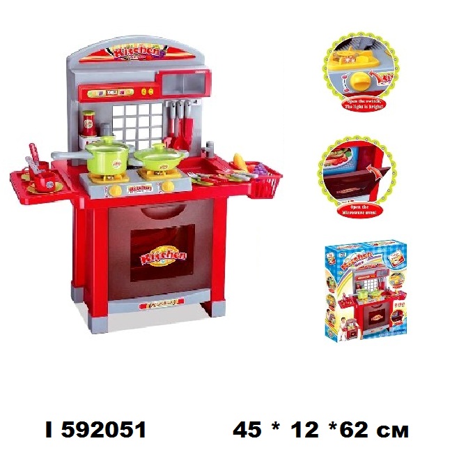 Плита со светом и звуком горящего газа (краник газа прокручивается).