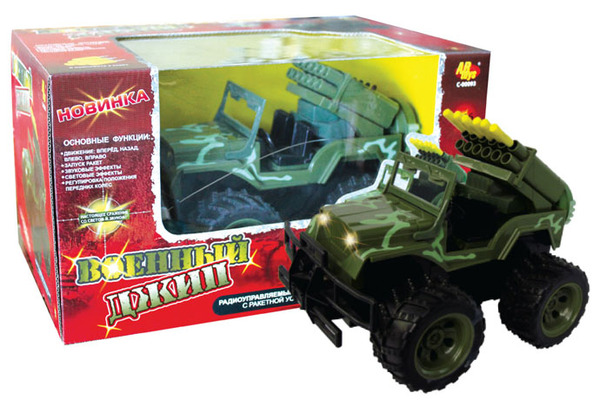 Джип р/у военный с ракетной установкой, стреляет 6 ракетами, со светом и звуком, работает от 5 АА батареек, 26,5х19х18,5см