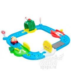 Трасса имеет 4 различных препятствия и собирается как пазл. Стоит завести покатунчика ключом, как он быстро поедет по трассе, преодолевая препятствия.