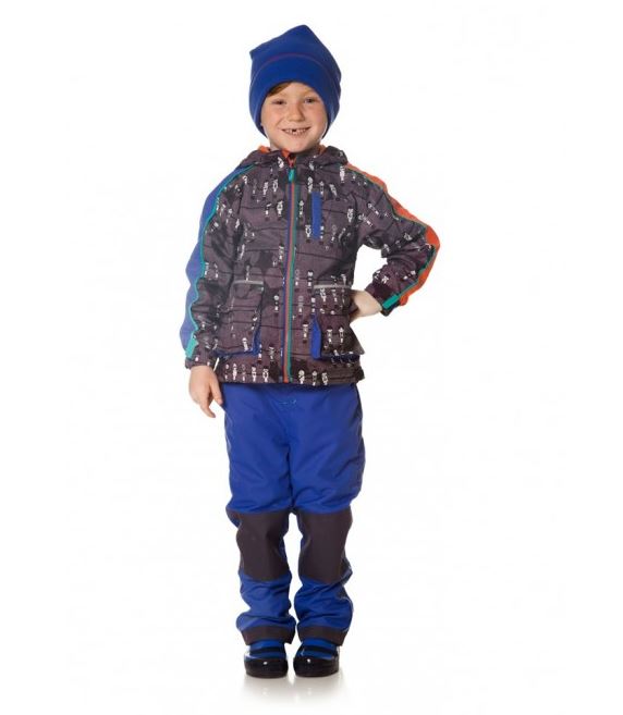 Стильный универсальный костюм, состоящий из куртки темно-серого цвета с яркими цветовыми полосками на рукавах и дизайнерским принтом, раскрывающим футбольную тему, синих брюк с темными вставками на коленях и по низу брюк, жакета и шапочки синего цвета. Технологичная ткань с водоотталкивающим покрытием сохранят тепло в прохладную, сырую погоду. Трикотажная подкладка куртки и брюк подходит для любой погоды и очень комфорта в использовании. Съемный яркий жакет из качественного микрофлиса можно использовать как пристегнутым к куртке для дополнительного утепления, так и отдельно как самостоятельный жакет. Удобные брюки усилены в местах повышенного износа, колени и по низу брючин, износостойкой тканью Cordura, а дополнительная резинка по низу брюк сохраняет тепло и защищает от попадания влаги. Стильный образ отлично дополняет яркая шапка из микрофлиса (в комплекте). Для удобства использования шапка для мальчиков от 6 мес до 4х лет выполнена с завязками, с 5 до 10 лет - без завязок.