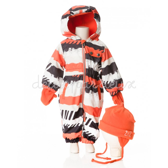 Состав, комбинезон: верх 100% полиэстер, водоотталкивающее покрытие 600 мм; подкладка (по телу, капюшон, рукава) поларфлис -100% полиэстер. Шапка и варежки: микрофлис - 100% полиэстер.