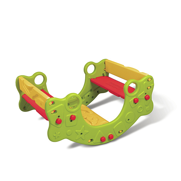 Может использоваться как качалка, скамейка или лесенка. Игровой центр изготовлен из качественного пластика, что делает его прочным и долговечным. Скамейки двухместные с удобной и широкой подставкой для ног. Качалка имеет ограничители, что делает игру безопасной. Если нет компании для игры, родители могут помочь и покачать ребенка. Для того чтобы использовать комплекс как лесенку или столик для рисования, необходимо его просто перевернуть.