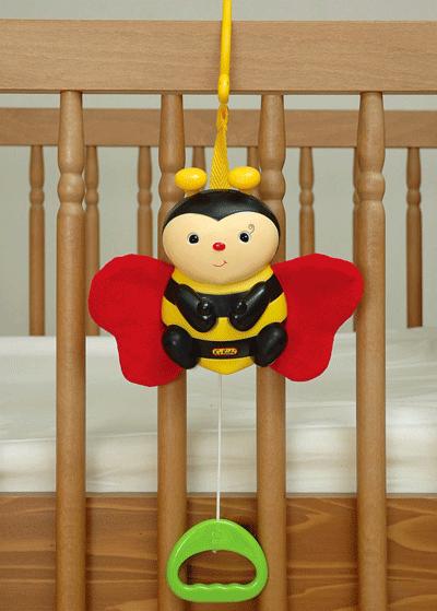 Музыкальная погремушка "Пчелка" привлечет внимание малыша и не позволит ему скучать. У пчелки шуршащие крылышки, а ее глазки и лапки двигаются. К пчелке прикреплен удобный держатель на шнурке. Если потянуть за держатель, шнурок вытянется и начнет втягиваться обратно, при этом пчелка начнет издавать мягкие мелодичные звуки, а ее крылышки, глазки и лапки начнут двигаться.