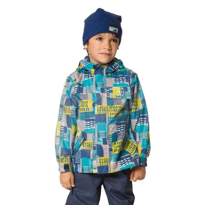 Яркая куртка, раскрашенная в синий, мятный, серый и салатовый цвета, с дизайнерским абстрактным принтом, раскрывающим тему городских строений. Технологичная ткань с водоотталкивающим покрытием и подкладка из микрофлиса сохранят тепло в прохладную, сырую погоду.