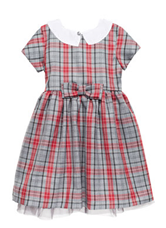 Платье с белым воротничком GDR0109-3 серая клетка 140