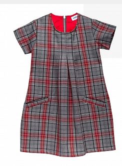 Платье с белым воротничком GDR0111-4 серая клетка 128