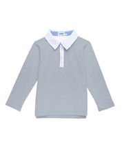 Футболка -поло, с воротничком,серая с джинсовым воротничком BTS113-3 серый меланж 128
