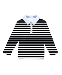 Футболка -поло, с воротничком, темно синий с джинсовым воротничком полоска темно синяя с белым BTS113-6 140