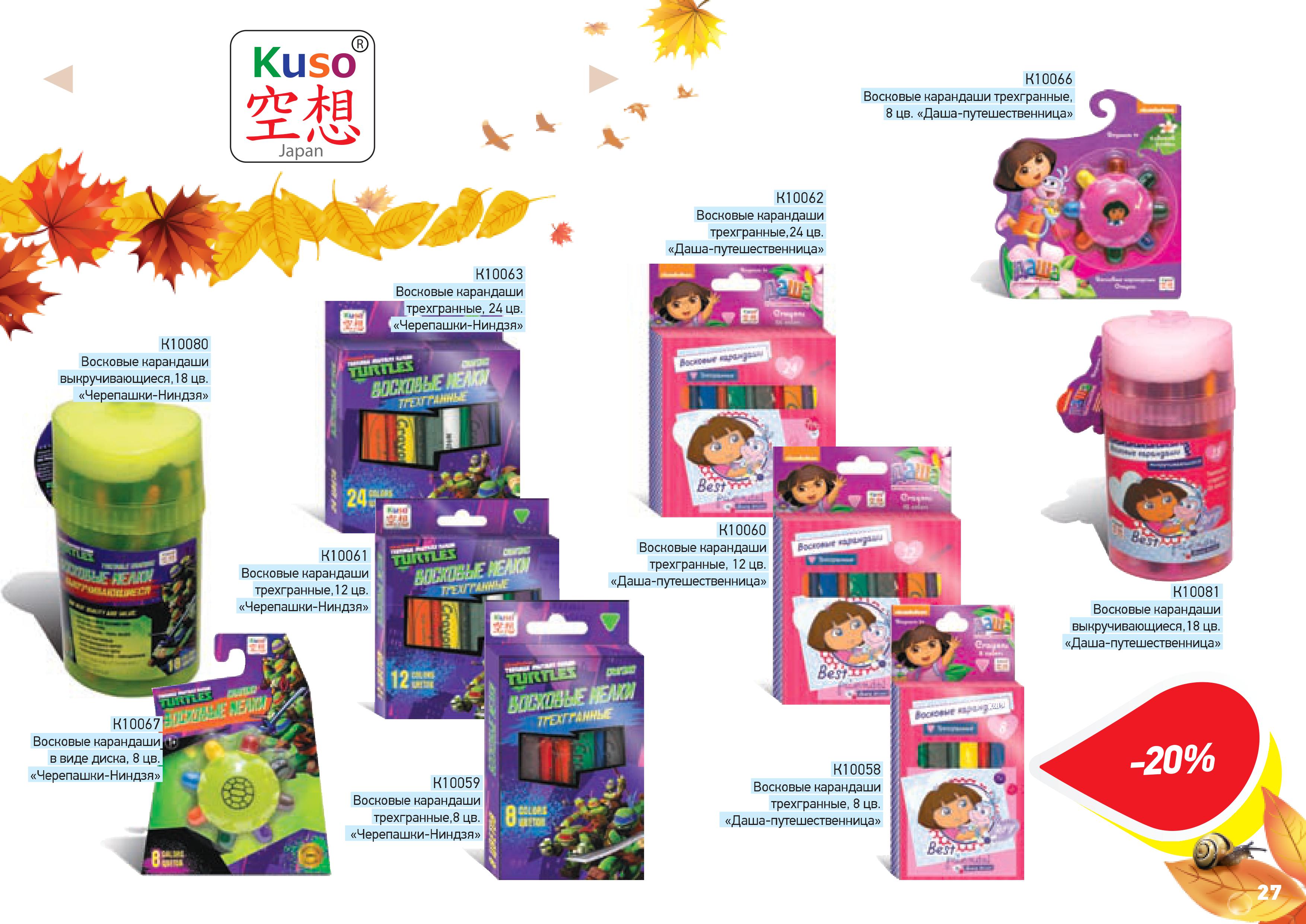 К10080 Воск. карандаши выкруч-ся в каранд.,"Чер.-ниндзя",18 цв 144 + орг