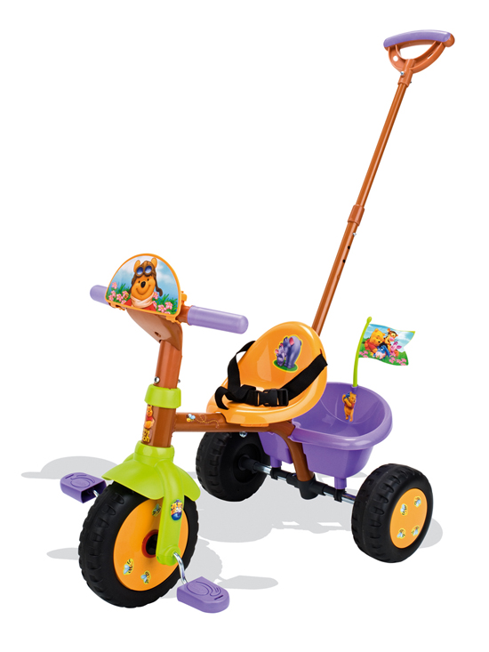 Удобный и надёжный трёхколёсный велосипед из серии Винни Пух. Комфортное сиденье, ремни безопасности, металлическая рама, плавный ход, корзина для игрушек, которая опрокидывается как кузов настоящего самосвала!