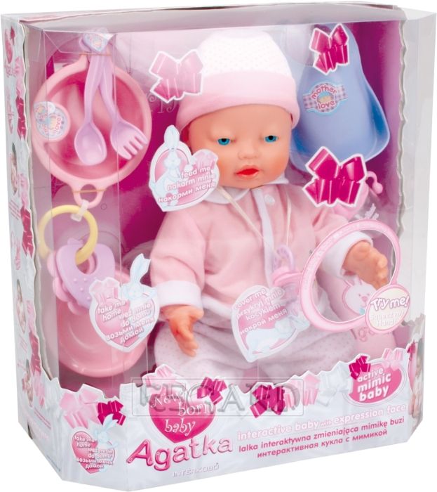 Интерактивная кукла - MIMIC - Кукла - ведет себя как настоящий ребенок - Особенности: движущиеся глаза, рот, руки и ноги, плачет, спит, храпит - Ассортимент включает: аксессуары для ребенка - Игрушка на питание от батарей
