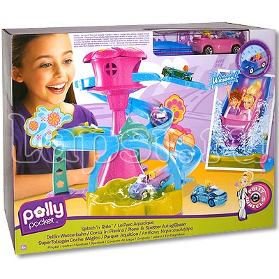 Игровой набор Полли Покет "Приключения на виражах" представляет собой водную трассу для автомобилей. Дорога будет полна сюрпризов, а в конце пути машину с водителем ждет бассейн с водой. Если на машину попадет вода, то она поменяет цвет.