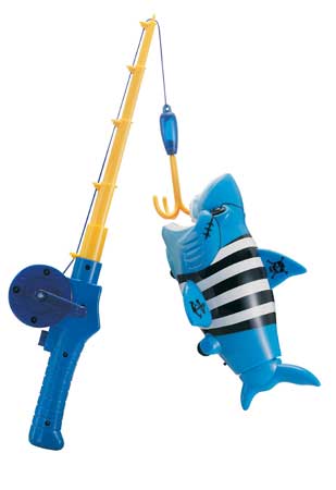 Главная цель игры – поймать акулу на спиннинг. Пойманная акула дрожит на удочке. Игрушка на элементах питания.
