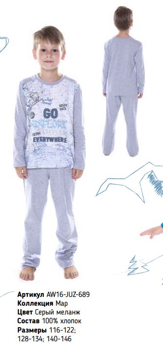 Пижама д/м Juno арт. AW16-JUZ-689 Map серый меланж р.128-134 100%хлопок 533,09