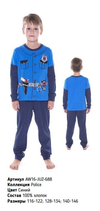 Пижама д/м Juno арт. AW16-JUZ-688 Police синий р.128-134 100%хлопок 533,09