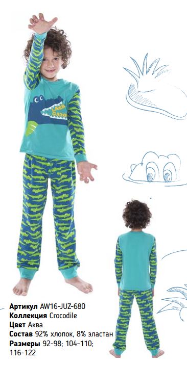 Пижама д/м Juno арт. AW16-JUZ-680 Crocodile аква р.104-110 92%хлопок/ 8%эластан 560,02
