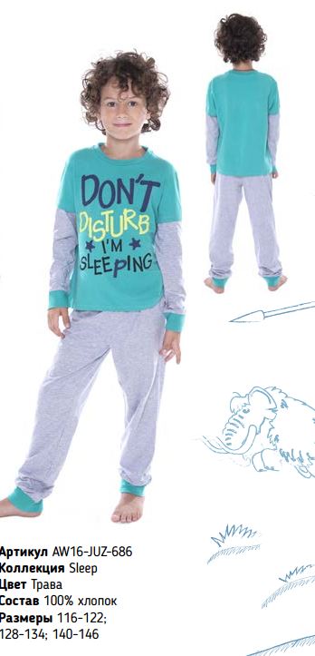 Пижама д/м Juno арт. AW16-JUZ-686 Sleep трава р.128-134 100%хлопок 533,09