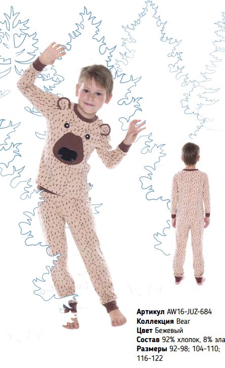 Пижама д/м Juno арт. AW16-JUZ-684 Bear бежевый р.116-122 92%хлопок/ 8%эластан 581,56