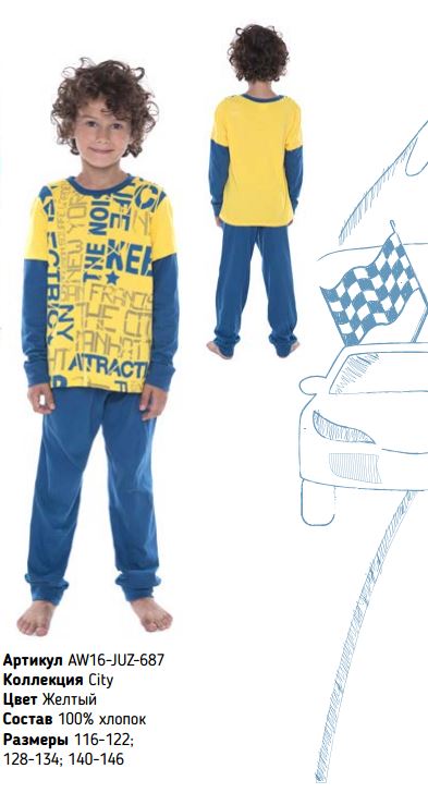 Пижама д/м Juno арт. AW16-JUZ-687 City желтый р.128-134 100%хлопок 533,09