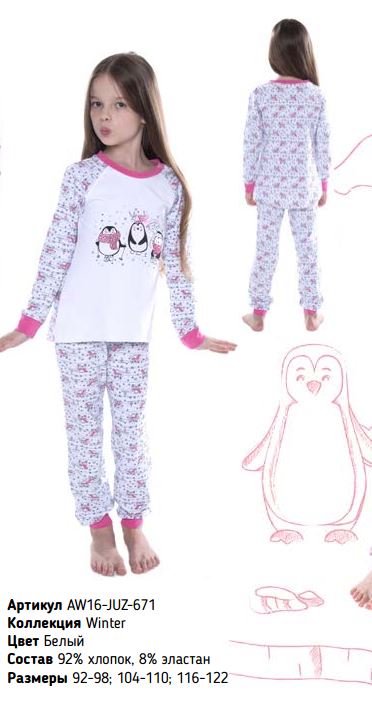 Пижама д/д Juno арт. AW16-JUZ-671 Winter белый р.116-122 92%хлопок/ 8%эластан 560,02