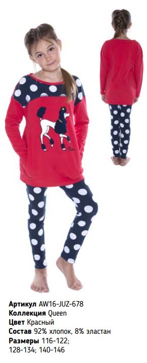 Пижама д/д Juno арт. AW16-JUZ-678 Queen красный р.128-134 92%хлопок/ 8%эластан 667,71