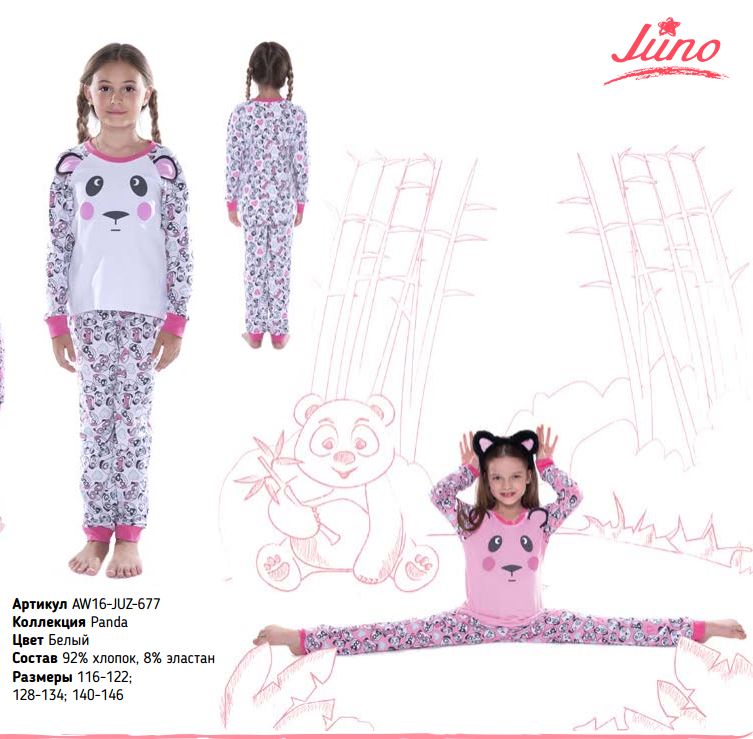 Пижама д/д Juno арт. AW16-JUZ-677 Panda белый р.128-134 92%хлопок/ 8%эластан 667,71
