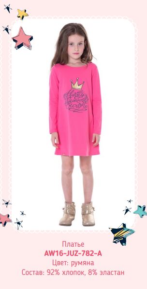 Платье длин.рукав д/дев Juno AW16-JUZ-782-A румяна р. 122 409,24