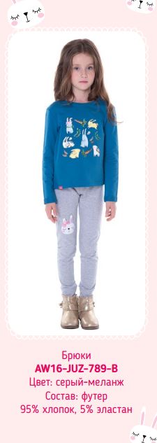 Брюки футер д/дев Juno AW16-JUZ-789-B серый меланж р. 104 333,86
