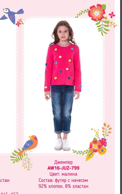 Джемпер футер с начесом длин.рукав д/дев Juno AW16-JUZ-799 малина р. 152 420,01