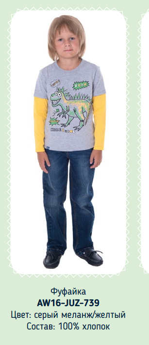 Фуфайка длин.рукав д/мал Juno AW16-JUZ-739 серый меланж/желтый р. 104 312,32