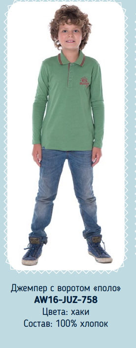 Джемпер с воротом "поло" длин.рукав д/мал Juno AW16-JUZ-758 хаки р. 152