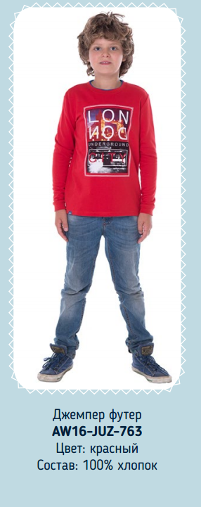 Джемпер длин.рукав футер д/мал Juno AW16-JUZ-763 красный р. 134 420,01