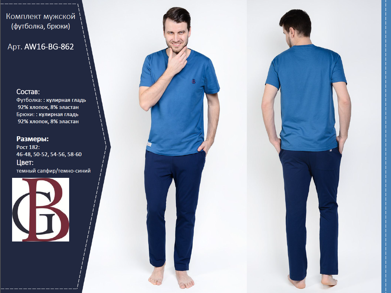 394616 Комплект муж (футболка, брюки) BG арт.AW16-BG-862 темный сапфир/темно-синий р.54-56 (рост 182 см) 92% хлопок/ 8% эластан