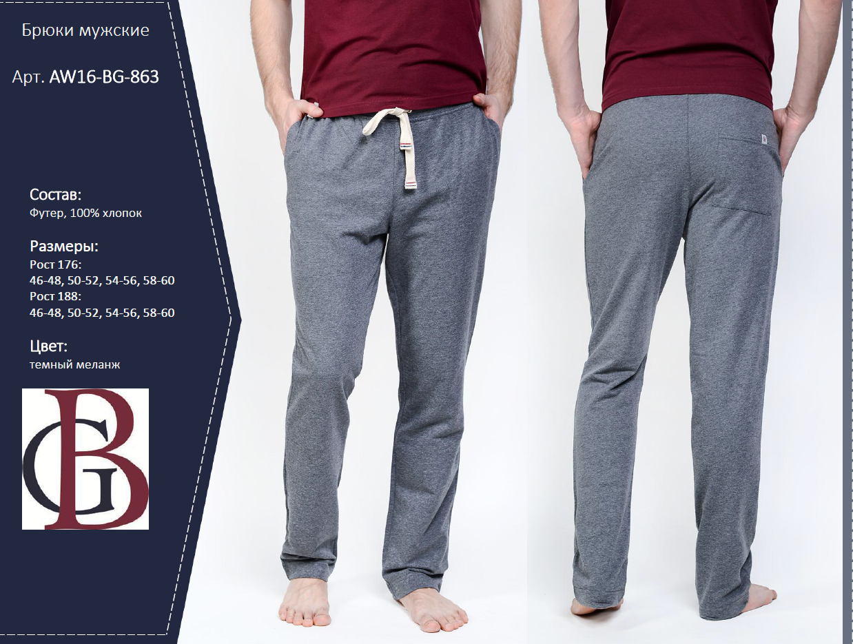 394568 Брюки муж BG арт.AW16-BG-863 темный меланж р.54-56 (рост 188 см)