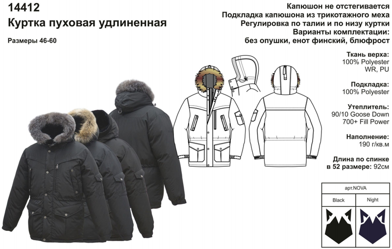 Куртка мужская пуховая удлиненная (без опушки) 14412 Night размер 46 5 990,00