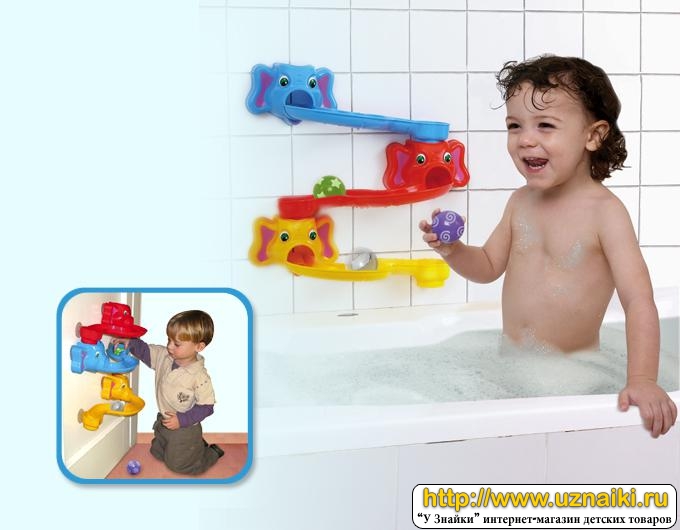 Яркий трек в виде трех цветных Слоников. Малыш бросает мячик, и тот катится по треку-лабиринту из слоновьих хоботов. Игрушка прекрасно развивает моторные навыки малыша. В комплекте три Слоника и три мячика. Слоники крепятся к любой гладкой поверхности с помощью присосок, поэтому игрушку можно использовать, как для игр в детской, так и для игры в ванной во время купания.