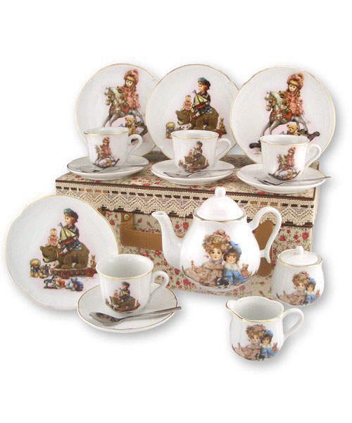 Детский чайный сервиз "Старинные игрушки" в подарочном чемодане изготовлен из высококачественного фарфора немецкой компании REUTTER PORZELLAN. Были созданы по эскизам известной художницы Берты Хуммель.