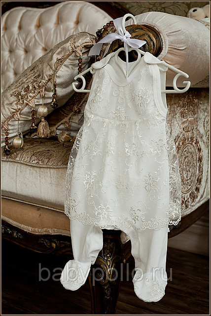 Состав -100 % хлопок (интерлок, пенье) размер 56, 62, цвет молочный. Отделка – тончайшее гипюрное полотно.